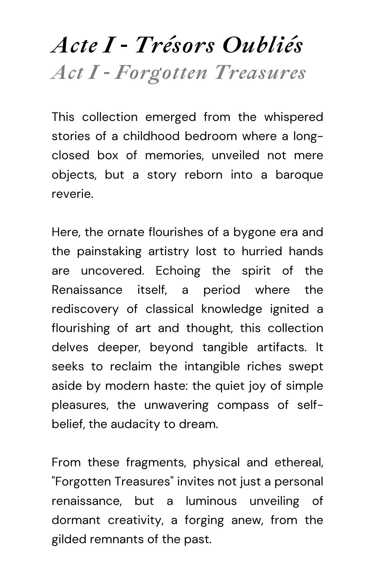 Our Inaugural Collection: Trésors Oubliés - Forgotten Treasures